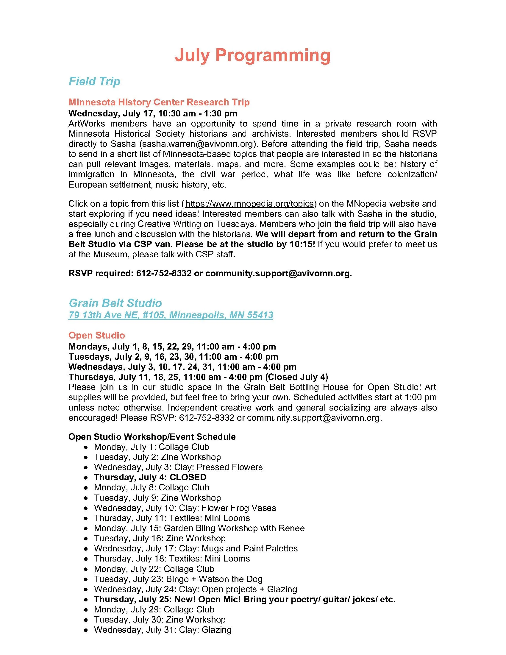 July Calendar and Newsletter Jun 27 Written By Avivo ArtWorks What are we up to in July? Avivo ArtWorks